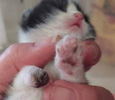 Daria came to us as an orphan kitten with a severe injury to her front paw and toes. We initially thought we would have to have it amputated, but the dead part fell off and she was ok. So we waited and we are glad we did. Daria’s foot continued to grow and she can use it to run and jump. She does walk with a bit of a limp, but it doesn’t slow her down much! Adopt Daria and experience the pure, unadulterated love of a feline friend.