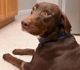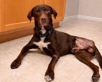 Watson is a ~2-year-old Lab/Pointer mix with excellent house manners, a big heart, and exactly three legs — and no, that does not slow him down. If anything, it just adds to his charm.